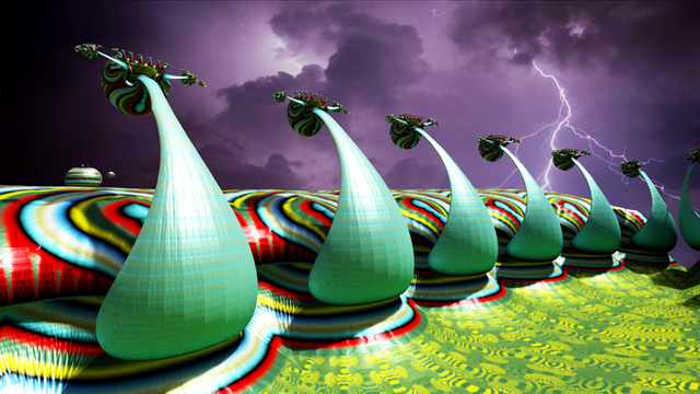 The manipulation of the parameters of one or more mathematical formula to produce a digital image-- it is not meant to represent anything in particular just an image.