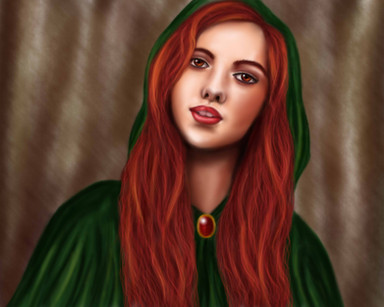 Wonderful artwork and I adore that detailed dress of hers!