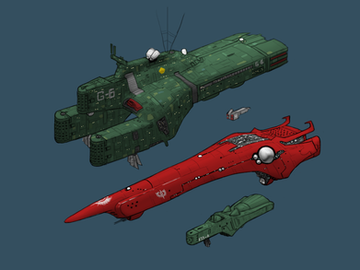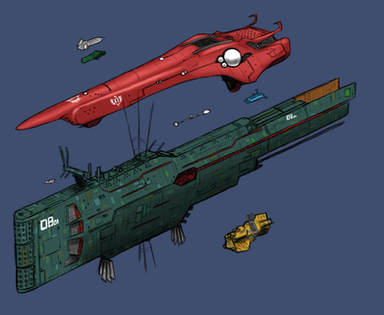 I always thought spaceships with huge rotating sections were awesome. Since they're semi-plausible also, it means ships of this kind are sorta closer to reality than most of the static starships in most science fiction.I originally just wanted to polish up the exile Taiidan Heavy Cruiser, but then I decided to draw the Omega and the Leonov to show where the inspiration came from.