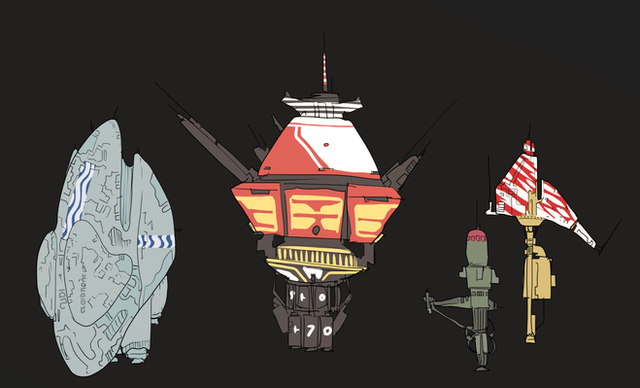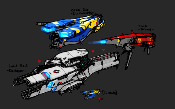 I also drew them to ward off comments of "Hey, a Taiidan-Omega Hybrid!" See for yourself, the only things they have in common are the rotating section and not much else.