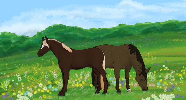 angry-horse-for-life 's girl Star who we are leasing and our own mare Red hanging out in the pasture after getting to know one another.Related content