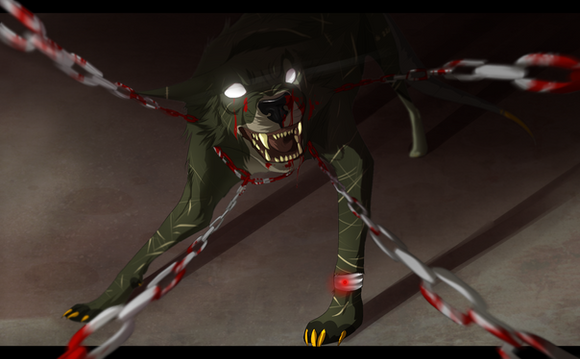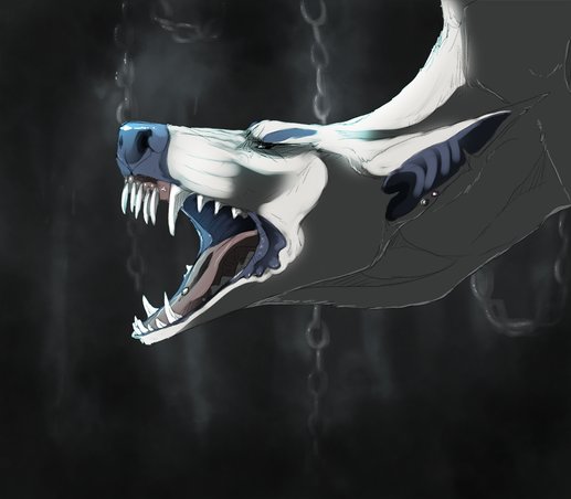 Dallas isn't happy that he's bound up in the concrete room. Likely this is after a dog has given him water and food... Hence all the slobber.