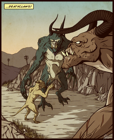 And sometimes he will run off to fight stronger enimies such as deathclaws cause i was kill a mercenary and then fawkes ran in front off me when i went round the corner there was a dead deathclaw and thats also when i lost my dogmeat puppy