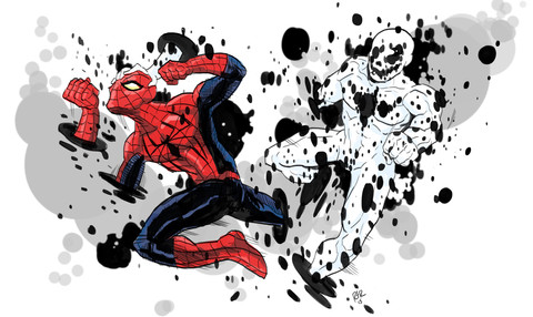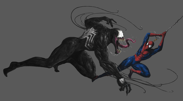 Oh, hi, Venom. Great drawing of Spidey--he always gives the chance for a dynamic pose.