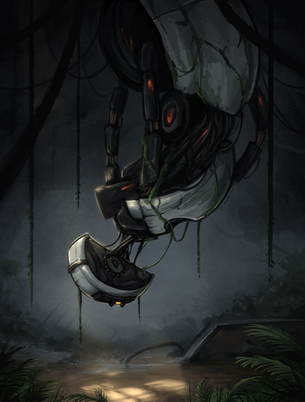 Stunning! I love the dynamic composition, the lighting effects, all the grunge details, wires everywhere, the grey shapes in the background. So striking!!