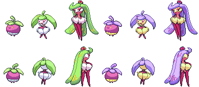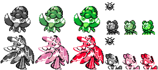 Front and backsprite of Fomantis from pokemon sun and moon.