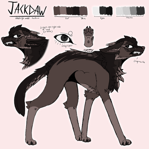 Our fearful wolf, who is just a puppy to Honeybee is here, with all their glory.Finally needed a proper ref sheet as a wolf too