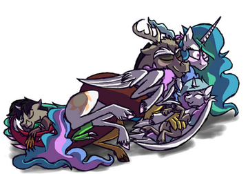 "So did I." He moved his head back onto his hooves and allowed his eyes to shut. "Sometimes I feel it's my fault... maybe I should've taken the whole 'popular important pony' path."