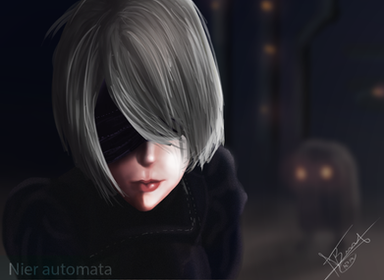 My lovely 2B is wearing a gas mask and has changed her hair? No way. xD