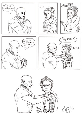 ...I don't know whether to be joyful or not. ;-; so I'll settle for cuddling Fenris until he puts a hand in my heart. *sniff*