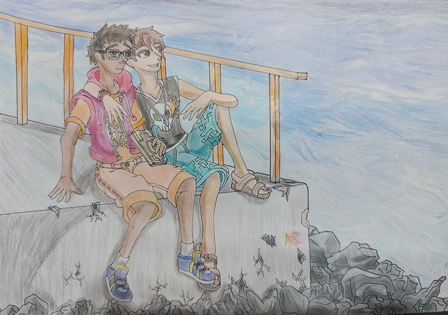#anime #cartoon #cloud #hill #landscape #mountain #sitting #sittingonahill #painying #cloudpainting #twobroschillinonahill5feetappartcausetheyrenotgay