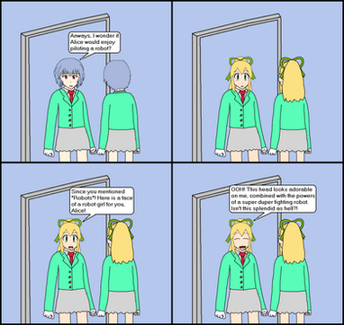 "ACTIVATING PROGRAM: REGRESS," spoke the robotic voice of the computer. Yurippe was initially worried that she had just set herself up to be killed, but her fears shifted when she took another step back. She managed to trip out of her shoe, which had suddenly become too large for her.