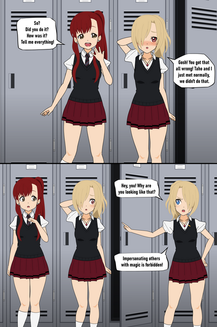 "No, what's happening?" She grasped furiously at her clothes, trying to keep her skirt from falling to her rapidly shrinking waist. Her socks fell, and her headband eventually slid off, being too large for her reduced body.