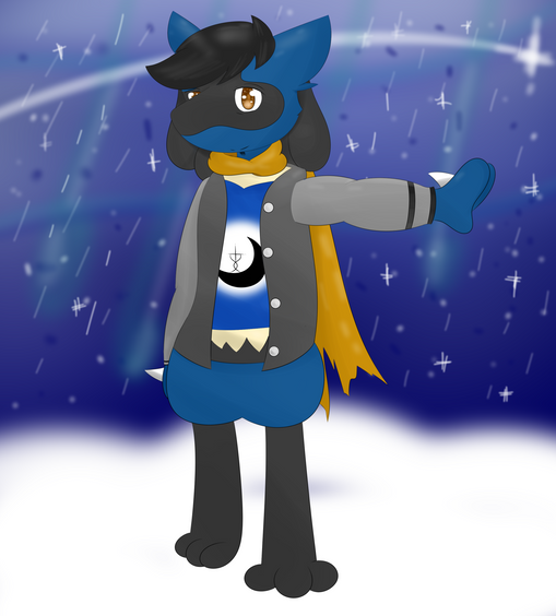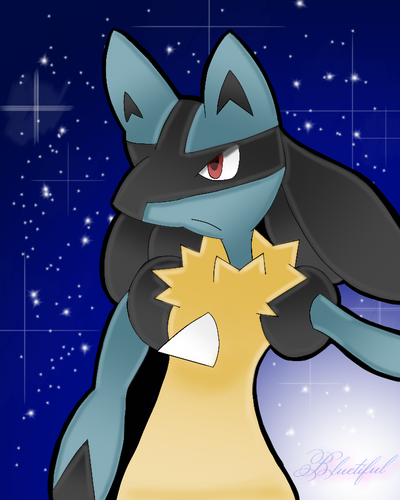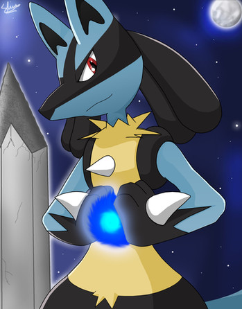 and i adore the job you did on this character <3 i love your lucario style. you make them look so... lucario! and you did a good job on the background as well!Β