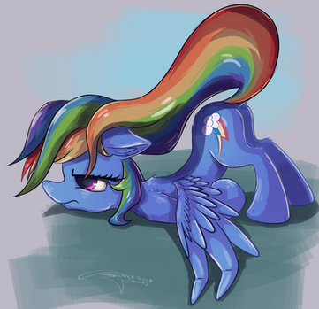 Anyway, just thought I should do some naught- sex-- ... cute. yeah, cute Rainbow Dash art since I'm, like, a fan of Dashie n' stuff. And it sure was fun trying out a new painting style that (for once) I actually LIKE! #earthponymasterrace