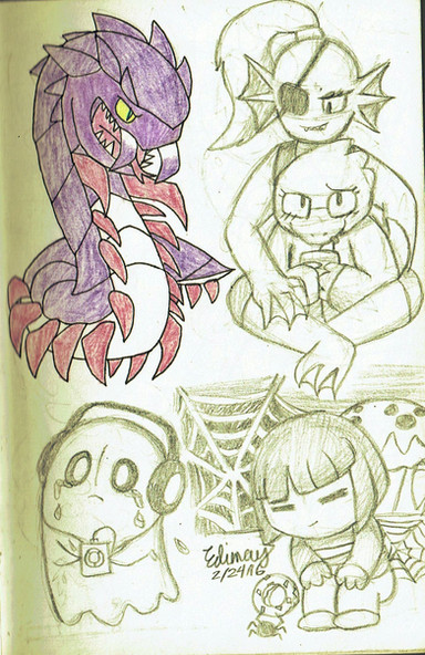 This is the first time Onyx has been drawn to my knowledge...not the Gemsona, they have been drawn countless times; I mean this particular design of Onyx. Hopefully my friend, Adam, will tell me the backstory behind Onyx. (He loves the drawing!) I asked to draw maybe any of his other Gemsonas, and he said that he has plenty, he just wants to get a basic sketch/palette ready before he shows me anything. The colors might blend better together this time; the purple kind of juxtapositions the rest of the palette, but all in all this is a win, and I love how it looks.Related content