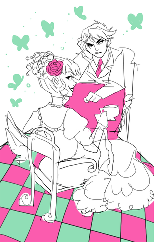 I'm deficient in coloring. Wish I could color digitally. Lines only - [link]Who put those flowers in there? It was not I. Well, the tea is safe to drink, so there's no need to worry.