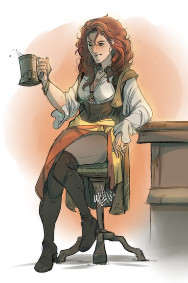 She has good days there though! She gets along with the other maids, harlots and some locals. A lot of the pirates that drink there don't believe she's sailed 10,000 nautical miles when they see her swallow tattoos (mainly because women were seen as bad luck on ships)