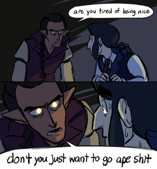 I think this scene happened in book 3 and as soon as I read that line, I had a mighty urge to draw it ;u;