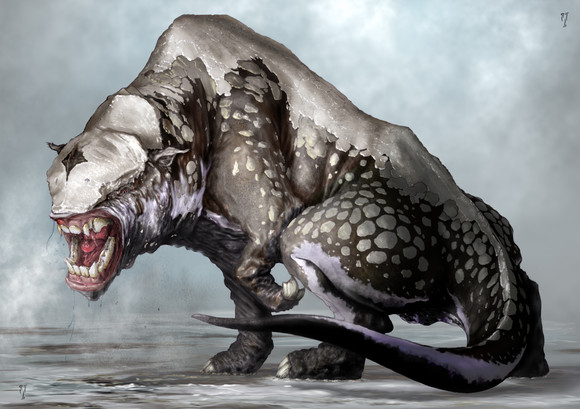 It seems to be a combination of a megatherium ( media.web.britannica.com/eb-me… ) and an indricotherium ( a137.idata.over-blog.com/0/03/… )