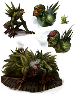 I really enjoy this picture. Your alien has the most interesting feet around, especially with how the tendon on the ankle/shin is! Also, it has some mighty fine claws. You did GREAT on the texture in this piece too!