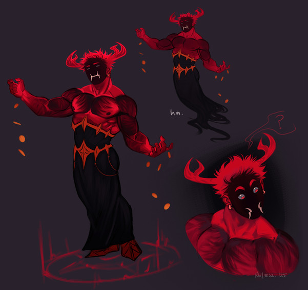 When feeling down in the dumps, drawing a buff horned guy always helps._