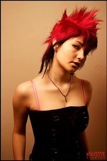I think this is one of the best photographs in your gallery - I put that down to the excellent pose and (as people below have said) your hair. The way you have it accross your face works well with the piercings and the shape of your face.