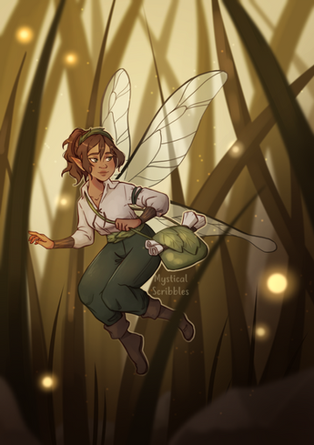 sketch of a fairy with a flashlight for dndRelated content