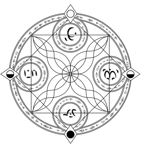 Sun and moon. Yen and yang. These act as balancing mechanisms to hero the substance being launched together, but also to help launch it. The vector through them, adding with other components of text and mental power, excite the object so it can be launched. It's mainly used for giving it enthalpy.