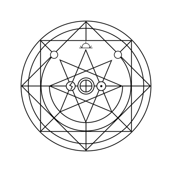 Inside the circle are specific alchemical runes. These runes vary widely based on ancient alchemical studies, texts and experimentation, but correspond to a different form of energy, allowing the energy that is focused within the circle to be released in the way most conducive to the alchemist's desired effect... more esoteric runes (including astrological symbols, symbolic images and varying lines of text) are prevalent and represent a multitude of other, specific functions for the alchemical energy that is released."