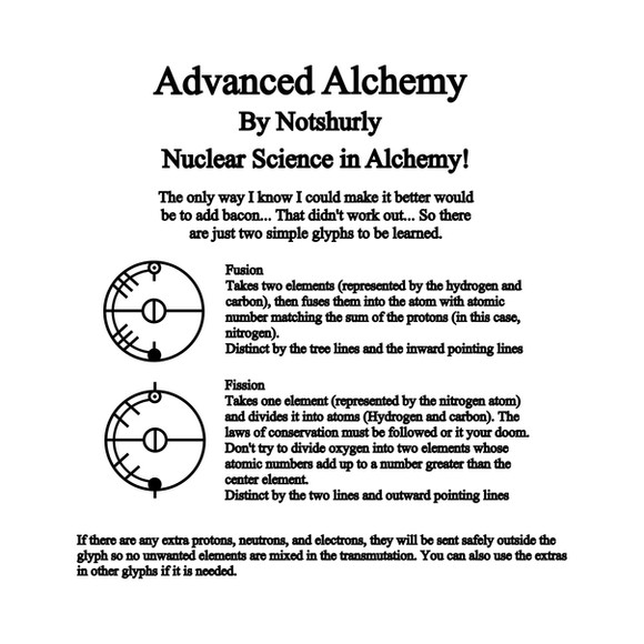 Why? What would be the point? Chemistry kicked Alchemy's ass since it was a pseudoscience. Not to mention that this stuff is all just fun and games. Pretend. Notshurly will describe how you can use X array to manipulate the blood flow in a person's body and cause them to die or clot wounds. But we all know he doesn't actually think you can do it with these drawings and when people talk to him, he knows they don't actually think they're work.
