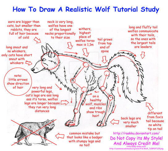 Anyway, as it says, this is not so much showing you how to draw in general, but more comparing dogs and wolves and pointing out some common mistakes when it comes to drawing wolves. Hope anyone out there will find it helpful!