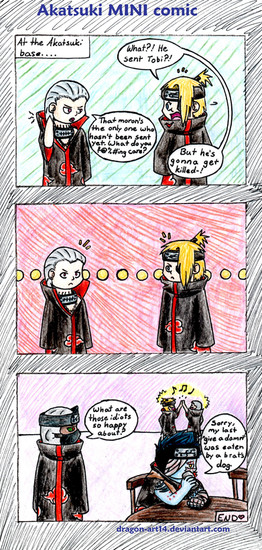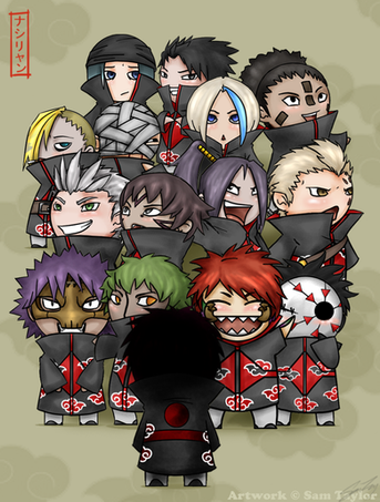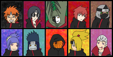 EDIT: Okay. I'm sick of all these little smart-asses posting stuff like "Haha! I know Leader's name!" and "But... Blue IS a girl. Yeesh. Read the manga!" Are you too simple-minded to figure out that this was drawn BEFORE they were revealed? What do you want me to do? Change every single piece of artwork I've ever done to fit with recent chapters? Hell no. So stop spamming my work just so you can get a small sense of false intelligence.EDIT AGAIN: I just wanted to take a quick moment to sincerely thank everyone for all the favs and comments on this. 10,000+ to be exact. Thanks for helping make this one of the most popular "Akatsuki" pics here on dA! You make me a happy, happy person.