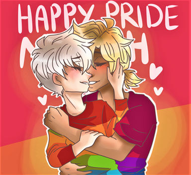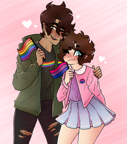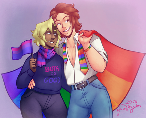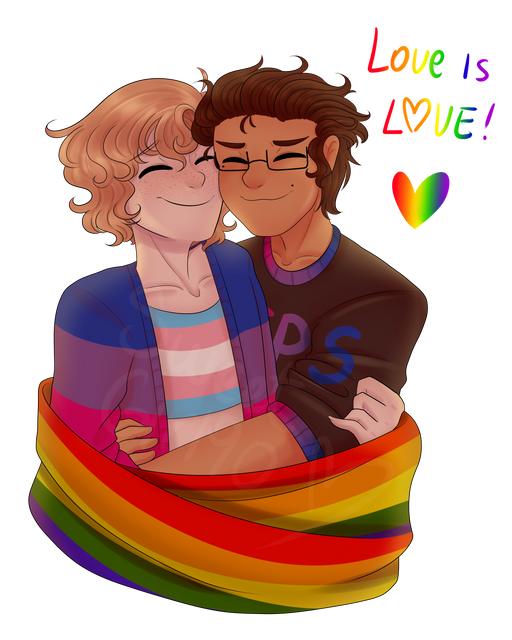 Another drawing for transgender awareness week !!! I had actually sketched this one out before the Miyasaka one, but luckily I had enough time to finish both c:I've always wanted to draw these two with pride flags