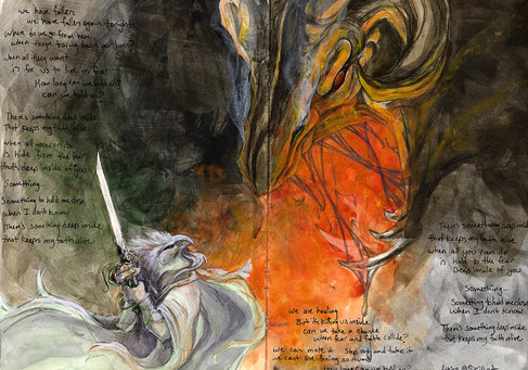 wow, the face and details on the eagle (yes?) are just gorgeous and beautifully realistic. I love the light protruding from the horned fellow. Such a neat narrative! Great work!