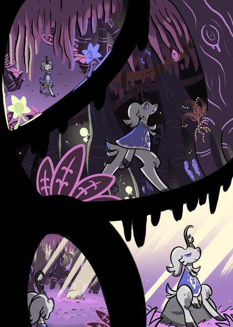 One of the pictures that went with the "choose your own adventure" type game I ran on Twitter, involving a specific place in my world, the Nightmare Forest. It was a fun time, plus I got to explore this place more and make some concept art for it!Thread on twitter: twitter.com/TheNovern/status/1…