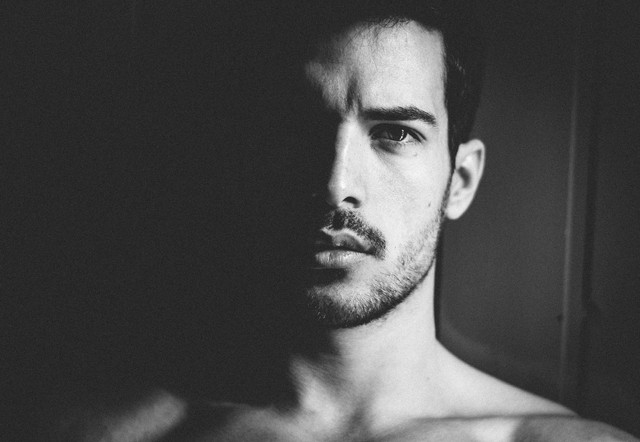Extremely intense shot. The high contrast is very well balanced. Also, you seem to have excellent artistic chemistry with the model, as his expression really communicates to the viewer. Fantastic!