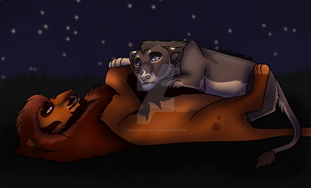 Aww, such a sweet scene, you've captured Sarabi and Mufasa so well, and their expressions are so well done! Gorgeous artwork!