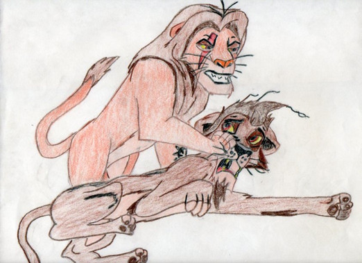 wow great job, I have a feeling even if Simba had been there a few minutes later then yes Scar would've done that. he would've killed her to make an example out of her, a sad pic but yes still very well done.