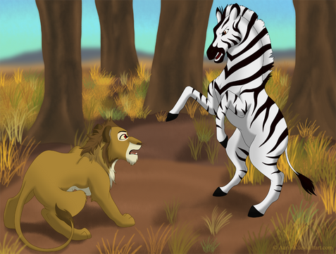 "A disgrace, am I?" the lion grinned evilly. Kovu never forgets.For the current contest at TLKFAA, 'I Could Eat A Whole Zebra'.