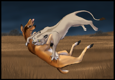 sssss*clenches teeth*....owwwch! Great pic! I really like the poses and how you did the cool dust! Did you use a smudge tool?