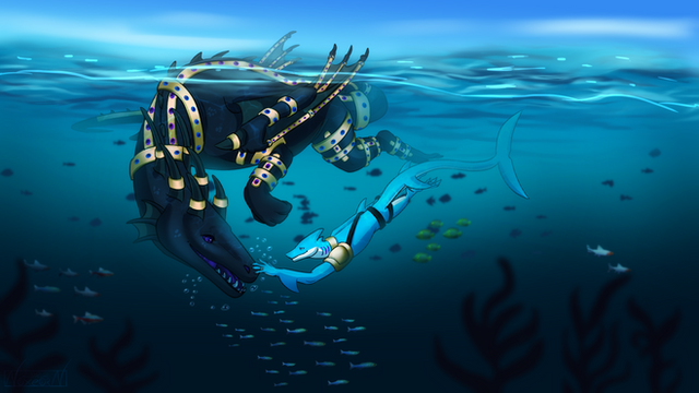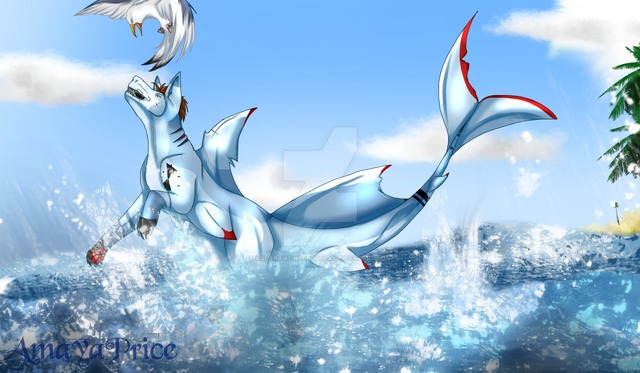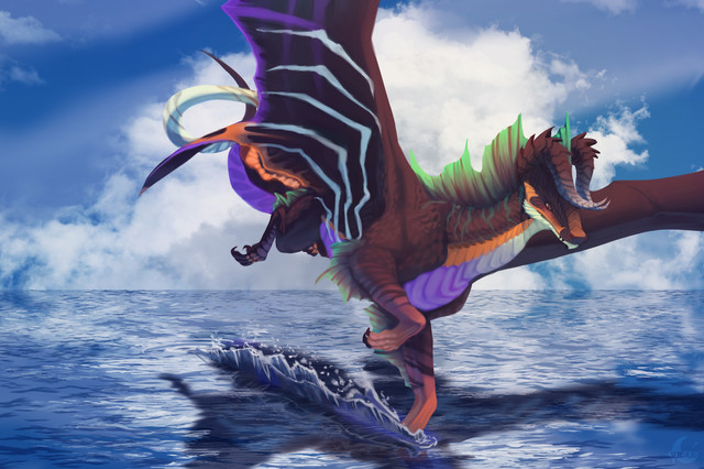#beach #dragon #shark #splashes #water #anthro #digitalart