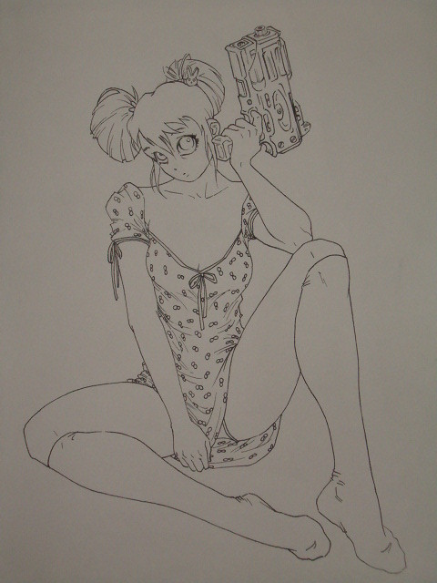Tank Girl fan art.Was done for a magazine cover called Dibujarte published monthly in Mexico.Watercolor on paper. Also used pen.