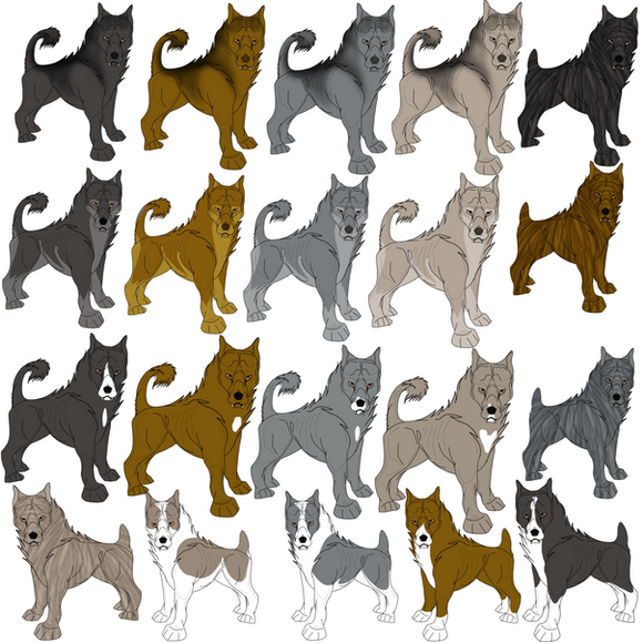 Finally, for once I'm able to draw a Rottweiler that somewhat looks like one. LolI did a docked and undocked version along with a long haired version with docked and undocked tails. The ones at the bottom is a Rottweiler with Vitiligo.