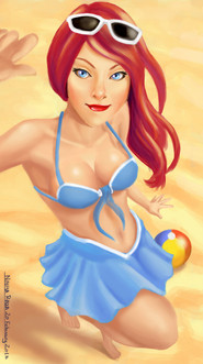 I love how you did her flowing blue dress; the way it's risen here is very dynamic!