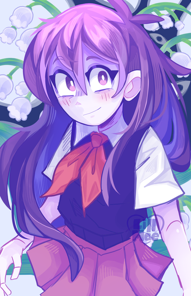 #videogamefanart #cutekawaii #animegirl #mari #purplehairgirl #sitting #skirt #omori #indiegamefanart #omorifanart #mari_omori
