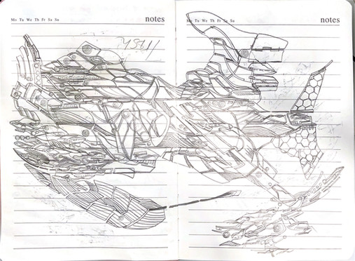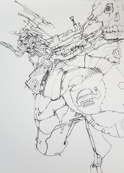 Foundation work. The subject was everyday life (i think). I decided to wrap my school stuff (buidlings etc) into a mechanical construct; a chaotic mess.Done with mechanical pencil.