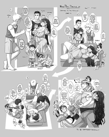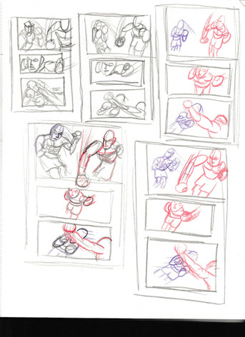 Alright! Don't take my example of action scene too strictly, because I didn't consider the page dimensions when I drew it (because I wanted to demonstrate "leading" at the same time). I'm fairly new with action scenes and poses, so it was quite hard to draw that too... xD just try to make it look like he is really using his strength!