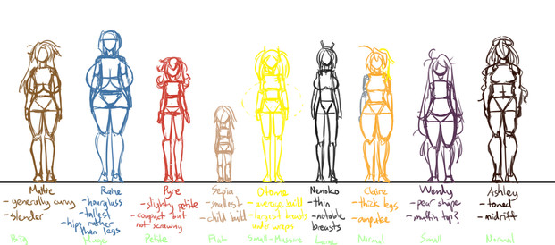 I probably could have come up more than these, but I'm not sure if I could have drawn more purely unique variants. The few I tried were obvious sub-variants of these. The position of the "serious" and "loli" variants are a bit unclear to me too.
