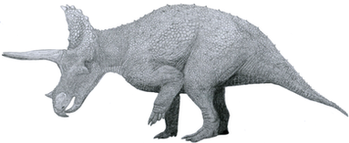 Torosaurus latus is a ceratopsian from the Late Cretaceous (Maastrichtian stage) of North America. Measuring 2.5 m, its skull is the longest of any land-living animal. The total length of the animal is estimated to be 6-7 meters. Remains, always incomplete, of this animal have been found in Wyoming, South Dakota, Montana, Colorado, Texas, New Mexico, Utah and Saskatchewan.Related content